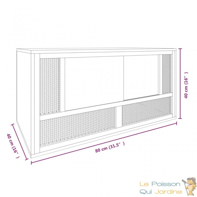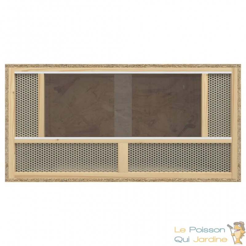 L'aspect pratique de ce terrarium est renforcé par une vitre avant transparente, permettant une observation détaillée de vos compagnons à écailles. Que ce soit pour des moments de détente, d'étude comportementale ou simplement pour apprécier leur beauté, cette fenêtre offre une vue claire sur leur monde intérieur.