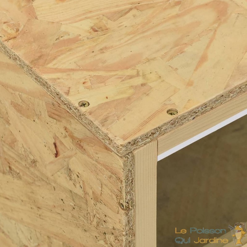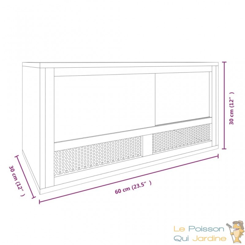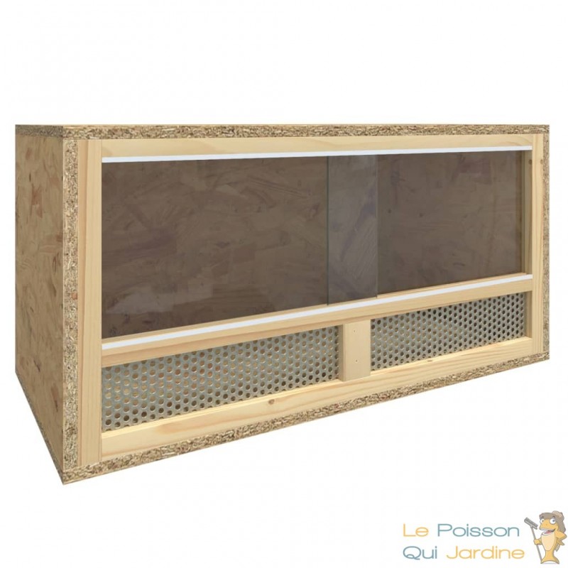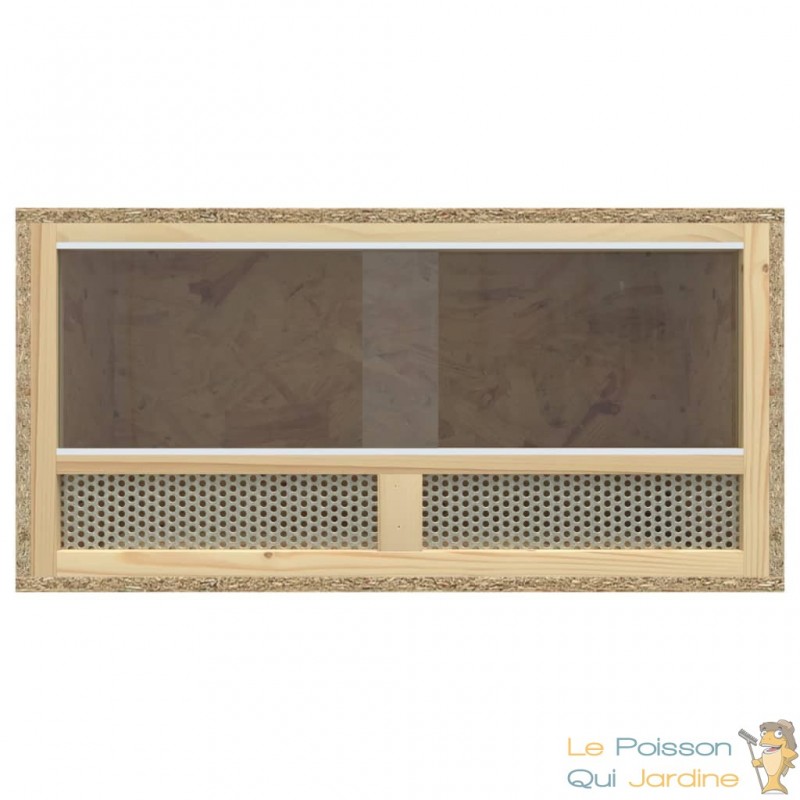 L'aspect pratique de ce terrarium est renforcé par une vitre avant transparente, permettant une observation détaillée de vos compagnons à écailles. Que ce soit pour des moments de détente, d'étude comportementale ou simplement pour apprécier leur beauté, cette fenêtre offre une vue claire sur leur monde intérieur.