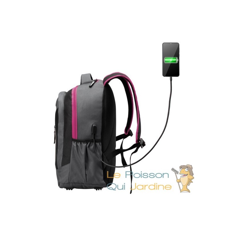 Une fonctionnalité ingénieuse est intégrée dans ce sac à dos pour répondre aux besoins de notre époque connectée. Un port USB soigneusement conçu vous permet de charger en toute sécurité vos appareils électroniques tels que smartphones, tablettes et ordinateurs portables. Vous pouvez même utiliser vos appareils en cours de chargement, tout en ayant l'assurance que le port est protégé contre les éclaboussures, grâce à sa certification IP44.