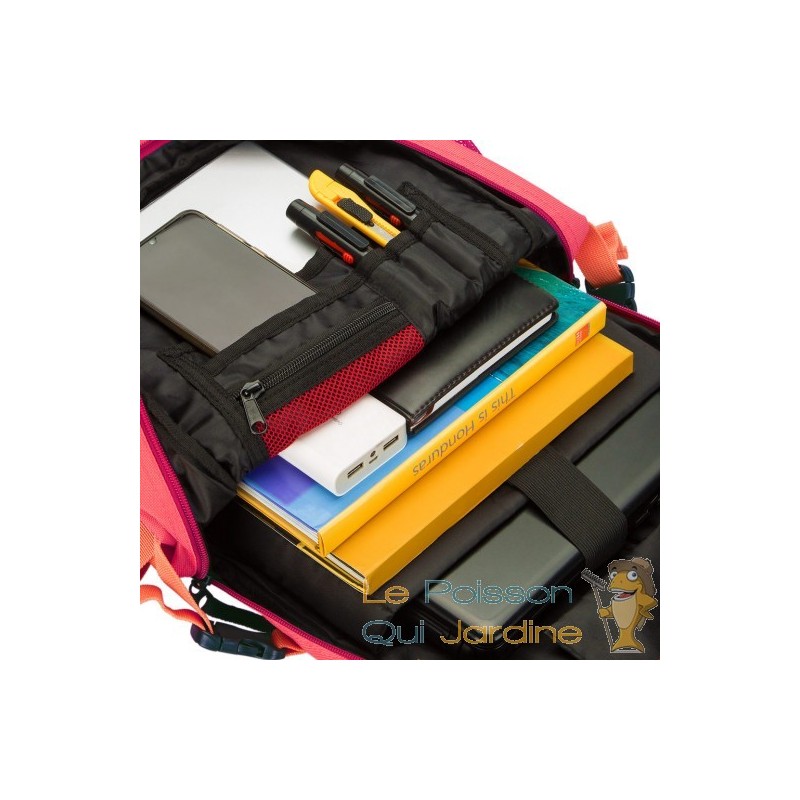 La poche principale a été intelligemment aménagée avec un compartiment dédié pour ordinateur portable et des pochettes astucieuses pour abriter votre téléphone, votre portefeuille ainsi que vos stylos. Les deux poches frontales offrent un espace supplémentaire pour une organisation optimale, tandis que la pochette en haut du sac est idéale pour ranger les petits objets nécessitant un accès rapide.
