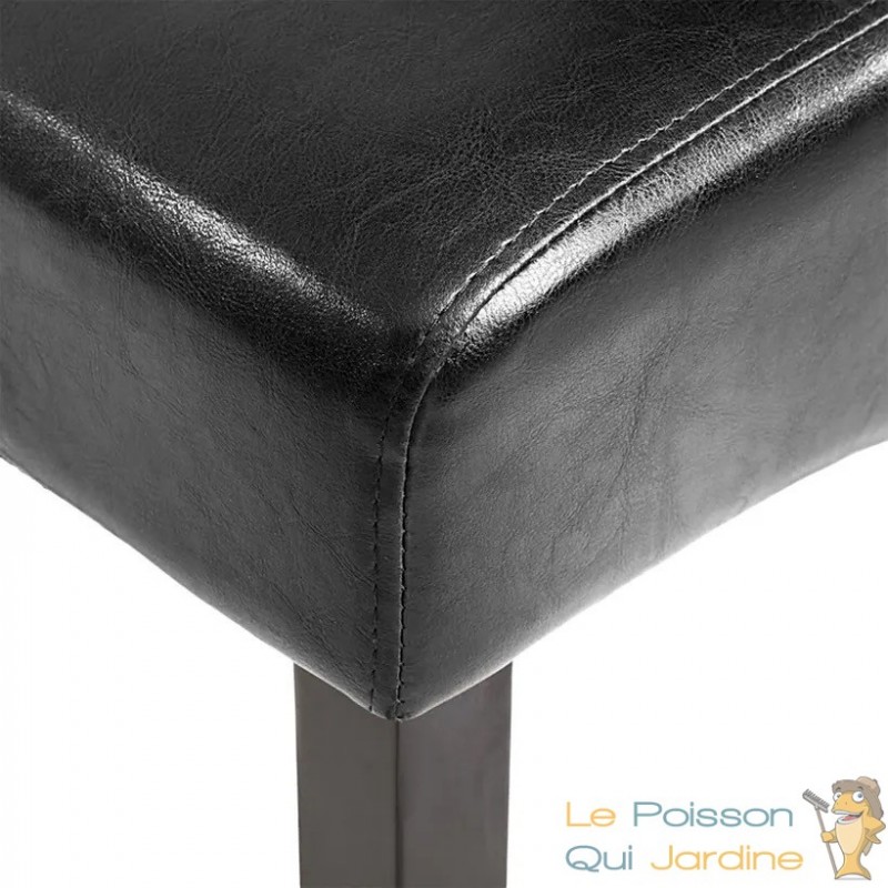 L'assise de la chaise est revêtue d'un matériau synthétique, alliant esthétique et praticité. Ce matériau offre non seulement un aspect visuel attrayant, mais aussi une facilité d'entretien remarquable. Vous pouvez aisément nettoyer l'assise avec un chiffon humide, ce qui permet de maintenir la chaise dans un état impeccable avec peu d'efforts. Cette combinaison de confort, de durabilité et de facilité d'entretien fait de ces chaises un choix idéal pour compléter votre espace de vie ou de repas, que ce soit dans votre cuisine, votre salle à manger ou votre salon.