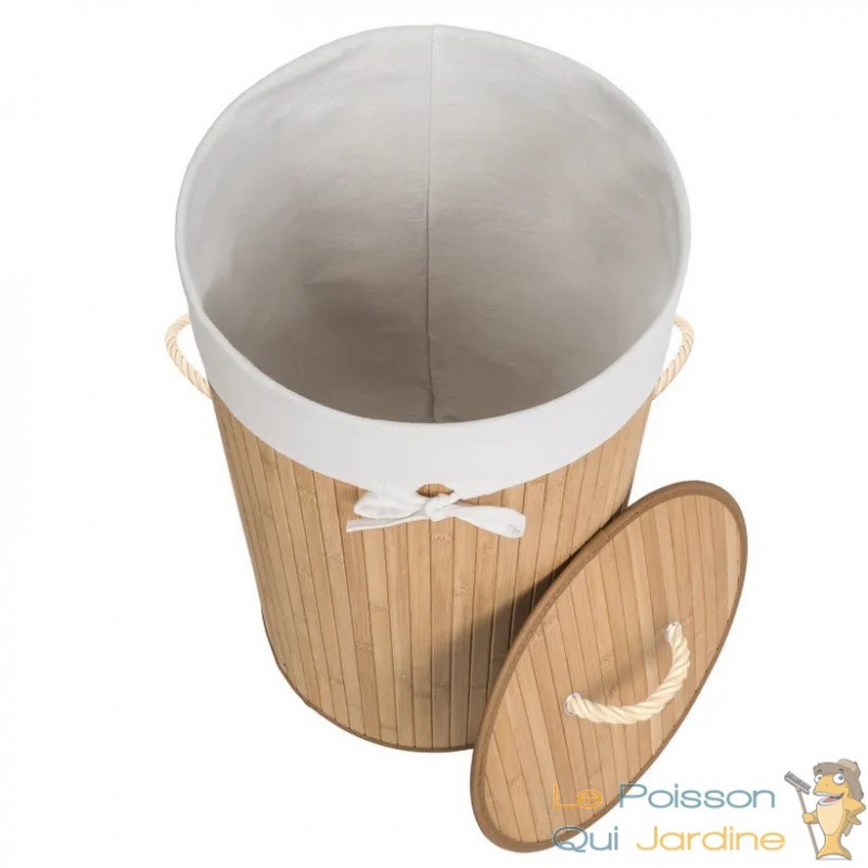 Découvrez ce superbe panier à linge en bambou d'une capacité de 57 litres, conçu pour vous offrir une solution de rangement pratique et esthétique pour votre buanderie. Avec son corps réalisé en lamelles de bambou de haute qualité, ce panier présente non seulement une belle apparence naturelle, mais il est également extrêmement robuste et durable.