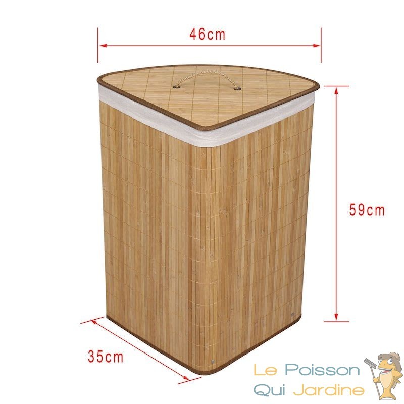 Initialement destiné à la salle de bains, son design élégant lui a valu une place d'honneur dans les chambres à coucher et autres pièces. Fabriqué en bambou robuste de 10 mm d'épaisseur, de couleur naturelle, ce matériau confère au panier une grande durabilité et résistance.