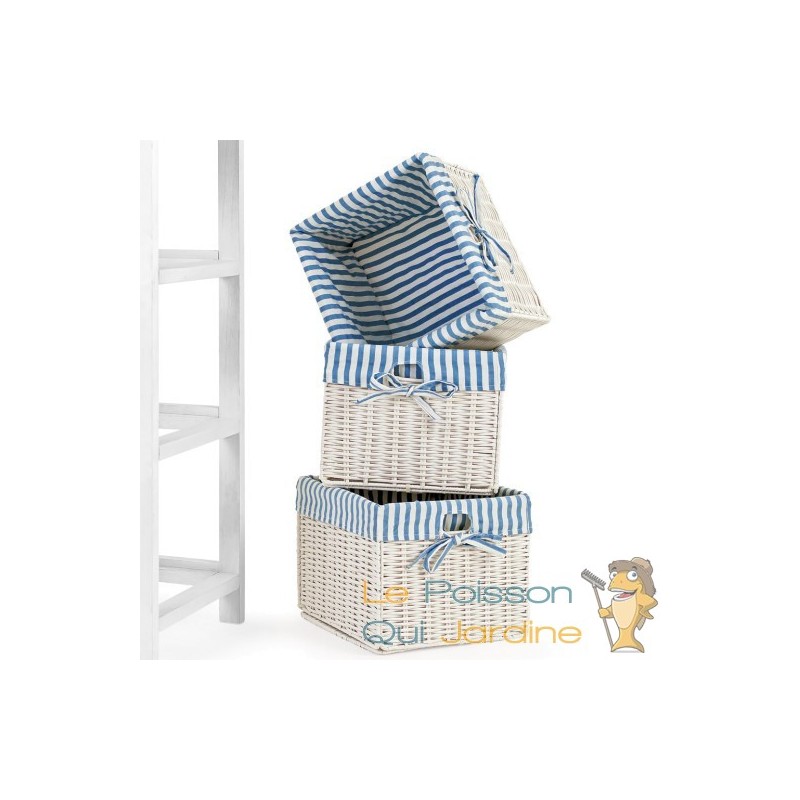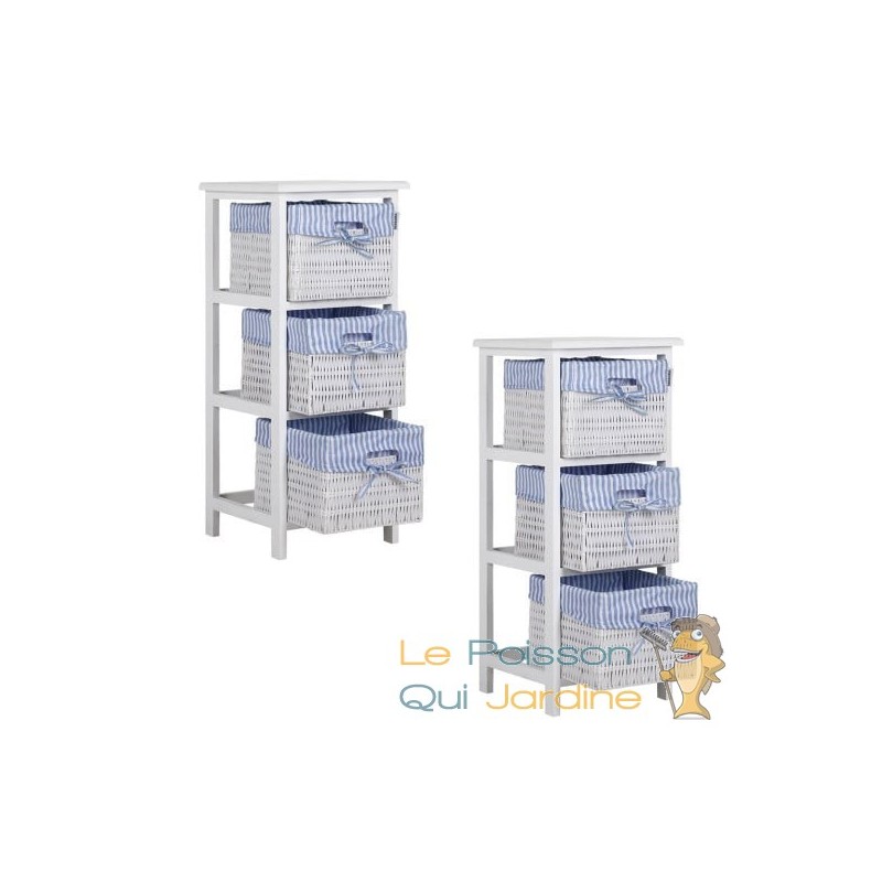Lot de 2 Étagères salle de bain avec 3 paniers imitation osier blanc style rustique ancien art déco