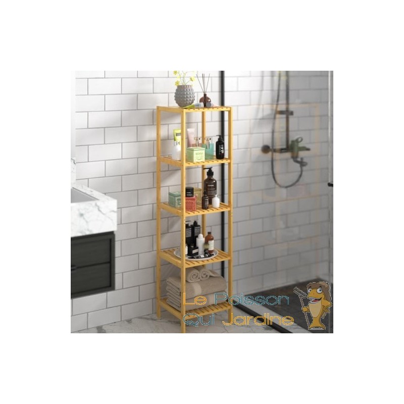 Construite avec du bambou, cette étagère est à la fois robuste et résistante. Le bambou est connu pour sa solidité naturelle et sa durabilité, ce qui en fait un choix idéal pour les espaces sujets à l'humidité comme la salle de bain. Sa capacité à résister à l'humidité en fait un meuble fiable qui peut supporter les conditions d'une salle de bain tout en conservant son élégance et sa fonctionnalité.