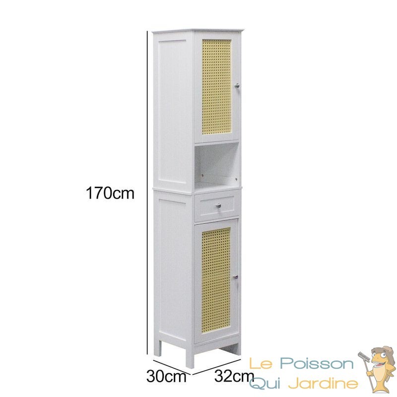 Avec des dimensions extérieures de 32 x 30 x 170 cm (L x l x H), cette armoire de la marque Toboli vous permet de garder votre salle de bains propre et bien rangée.