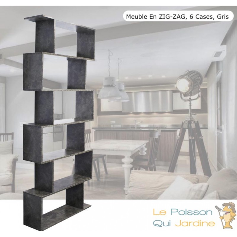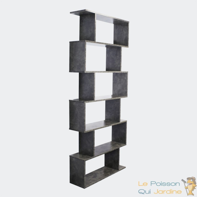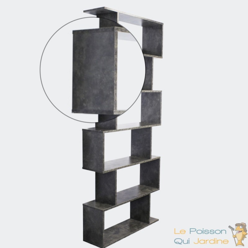 Son design est minimaliste, original car ce n'est pas une forme classique et donc contemporain et moderne. Sa couleur grise en font un meuble étagère bibliothèque discret et épuré.