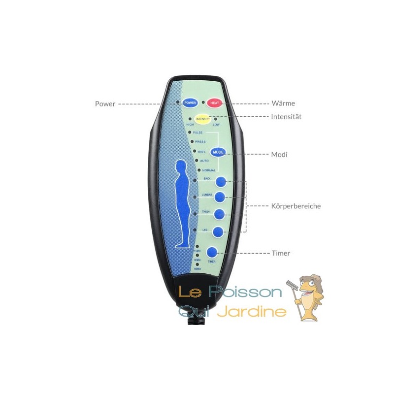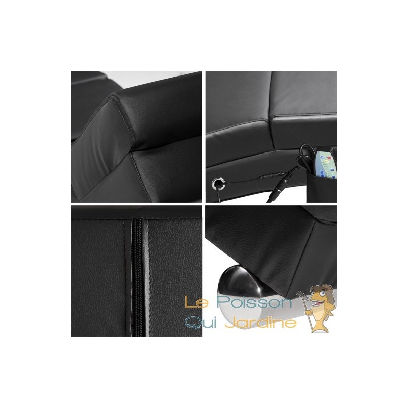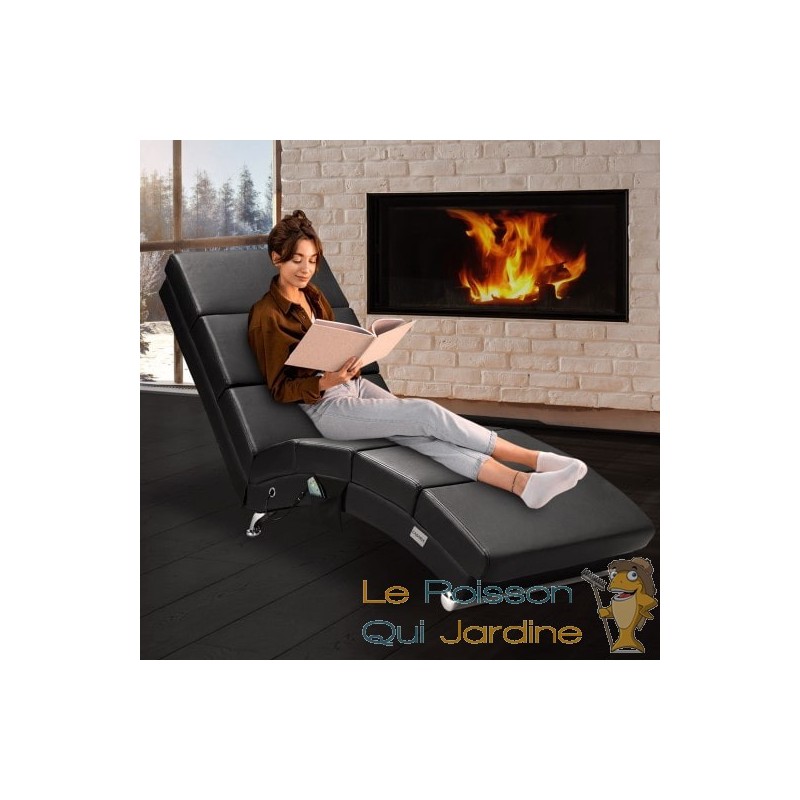 Doté de 8 points de massage et de 5 modes de massages différents, tous ajustables sur deux niveaux d'intensité, vous pouvez profiter d'un massage apaisant sur tout votre corps. Idéal pour vous détendre, surtout en hiver, la fonction de chauffage réchauffe vos muscles et vous enveloppe d'une chaleur apaisante. Vous pouvez régler une minuterie pour que la chaise longue s'éteigne automatiquement après une période de temps prédéfinie.