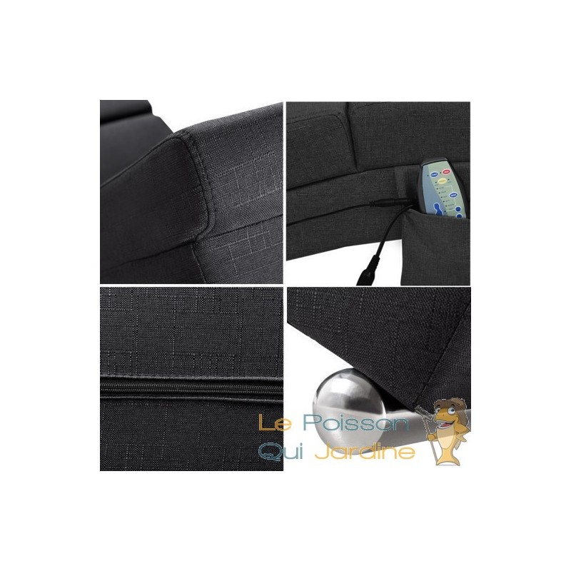 Doté de 8 points de massage et de 5 modes de massages différents, tous ajustables sur deux niveaux d'intensité, vous pouvez profiter d'un massage apaisant sur tout votre corps. Idéal pour vous détendre, surtout en hiver, la fonction de chauffage réchauffe vos muscles et vous enveloppe d'une chaleur apaisante. Vous pouvez régler une minuterie pour que la chaise longue s'éteigne automatiquement après une période de temps prédéfinie.