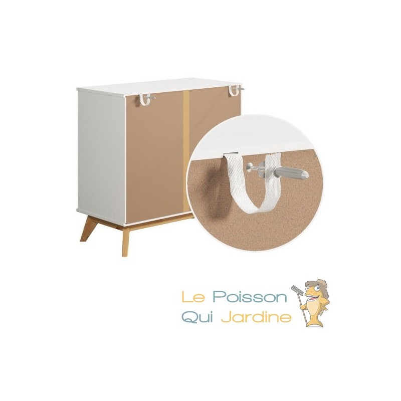 Les pieds en bois massif de forme conique offrent une stabilité optimale, et le système de fixation à l'arrière ajoute une sécurité supplémentaire. Vous avez également la possibilité de le fixer au mur pour une stabilité renforcée.