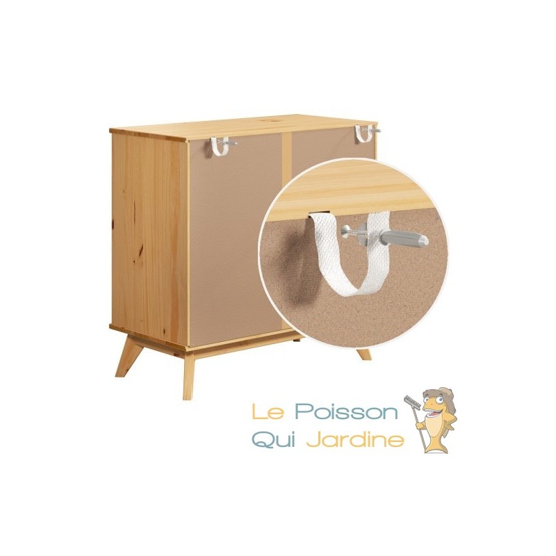 Pour renforcer davantage la stabilité, la commode est équipée d'un système de fixation à l'arrière. Cela ajoute une sécurité supplémentaire en empêchant la commode de basculer ou de se renverser accidentellement, ce qui est particulièrement important dans les environnements où des enfants ou des animaux domestiques peuvent être présents.
