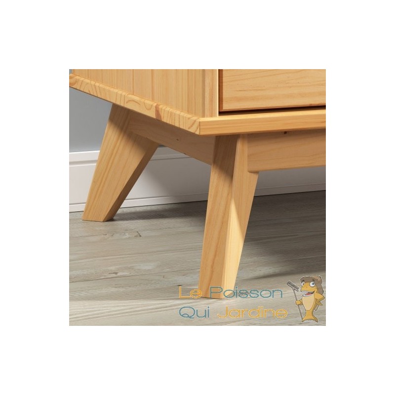 La commode est conçue pour offrir une stabilité optimale et une sécurité accrue grâce à ses pieds en bois massif de forme conique. Ces pieds robustes assurent une base solide, permettant à la commode de rester stable même lorsqu'elle est pleinement chargée de vos effets personnels.