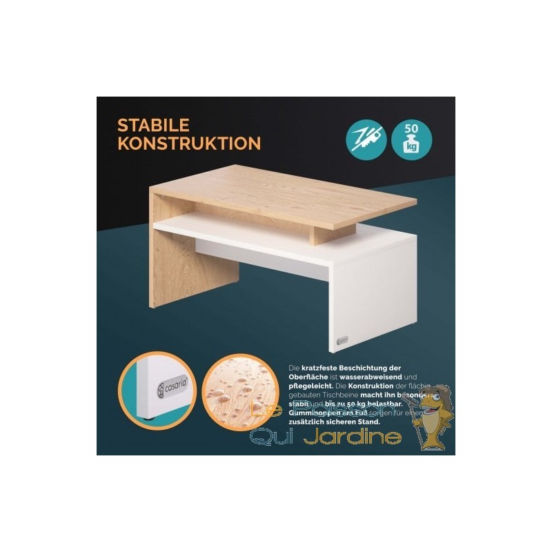 De plus, cette table basse se distingue par sa durabilité et sa simplicité de montage. Sa surface résiste aux rayures, est hydrofuge et facile à entretenir. Grâce à la conception de ses pieds plats, elle offre une stabilité exceptionnelle et peut supporter jusqu'à 50 kg.