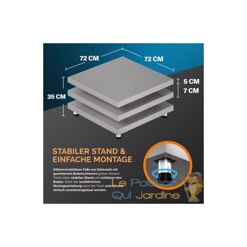 PRATIQUE ET ASSEMBLAGE FACILE Les pieds de la table, fabriqués en acier inoxydable, sont ajustables en hauteur et munis de patins en caoutchouc pour une stabilité optimale et une protection du sol. Le montage de la table est rapide et simple. Grâce à la praticité de ses pieds ajustables et de son assemblage facile, cette table offre une solution conviviale et fonctionnelle pour votre espace. Les patins en caoutchouc assurent non seulement une stabilité optimale, mais protègent également le sol contre d'éventuelles rayures. En résumé, cette table combine praticité, stabilité et facilité d'assemblage pour répondre à vos besoins avec efficacité.