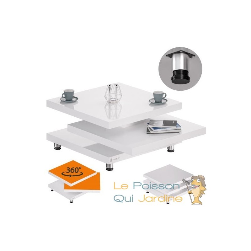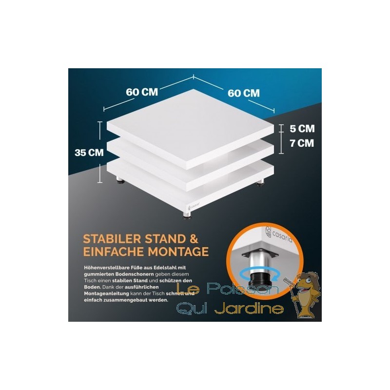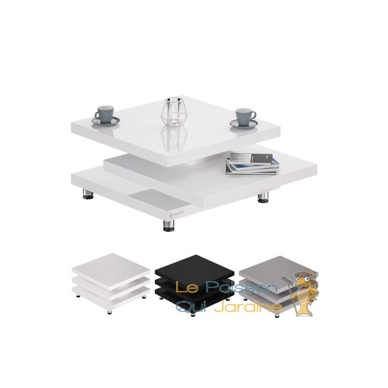 POLYVALENCE ET ESPACE GÉNÉREUX Dotée de trois plateaux carrés, cette table basse offre un espace de rangement généreux pour tous les éléments essentiels du salon. Chacun de ces plateaux peut supporter jusqu'à 20 kg de charge, ce qui vous permet de disposer aisément de nombreux objets du quotidien.