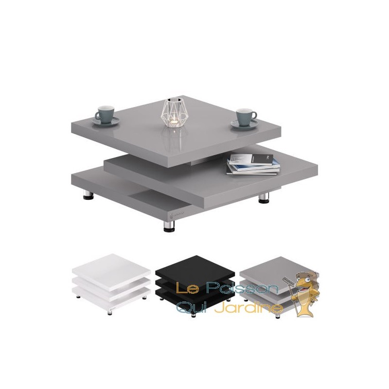 POLYVALENCE ET ESPACE GÉNÉREUX Dotée de trois plateaux carrés, cette table basse offre un espace de rangement généreux pour tous les éléments essentiels du salon. Chacun de ces plateaux peut supporter jusqu'à 20 kg de charge, ce qui vous permet de disposer aisément de nombreux objets du quotidien.
