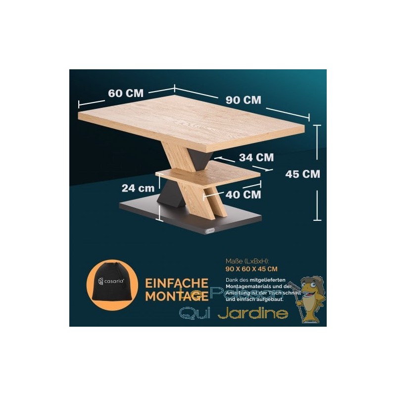 Véritable pièce maîtresse de votre salon, cette table basse moderne allie habilement sobriété et détails raffinés. Conçue pour s'adapter à tous les moments de vie — des apéritifs entre amis aux soirées lecture — elle se distingue par son plateau épais de 50 mm reposant sur un piètement croisé futuriste. Son design contemporain bicolore noir et chêne apporte une touche de caractère et de chaleur, s'harmonisant avec tous les styles de canapés et d'intérieurs.