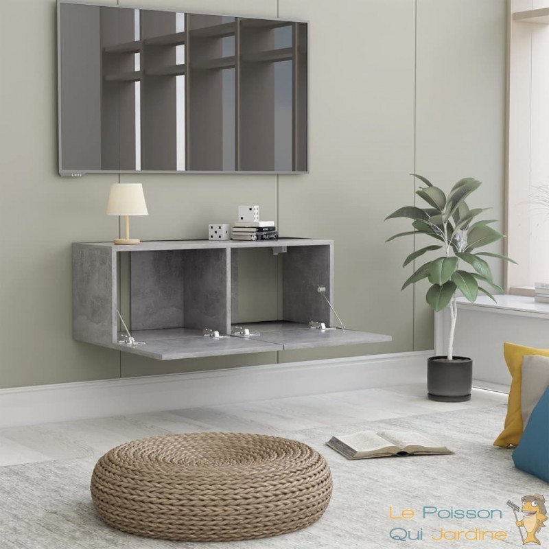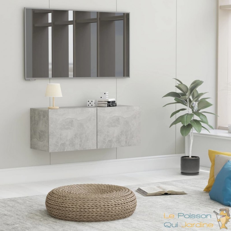 Grâce à sa fixation murale, ce meuble TV élégant ajoute une touche intemporelle à votre espace domestique.