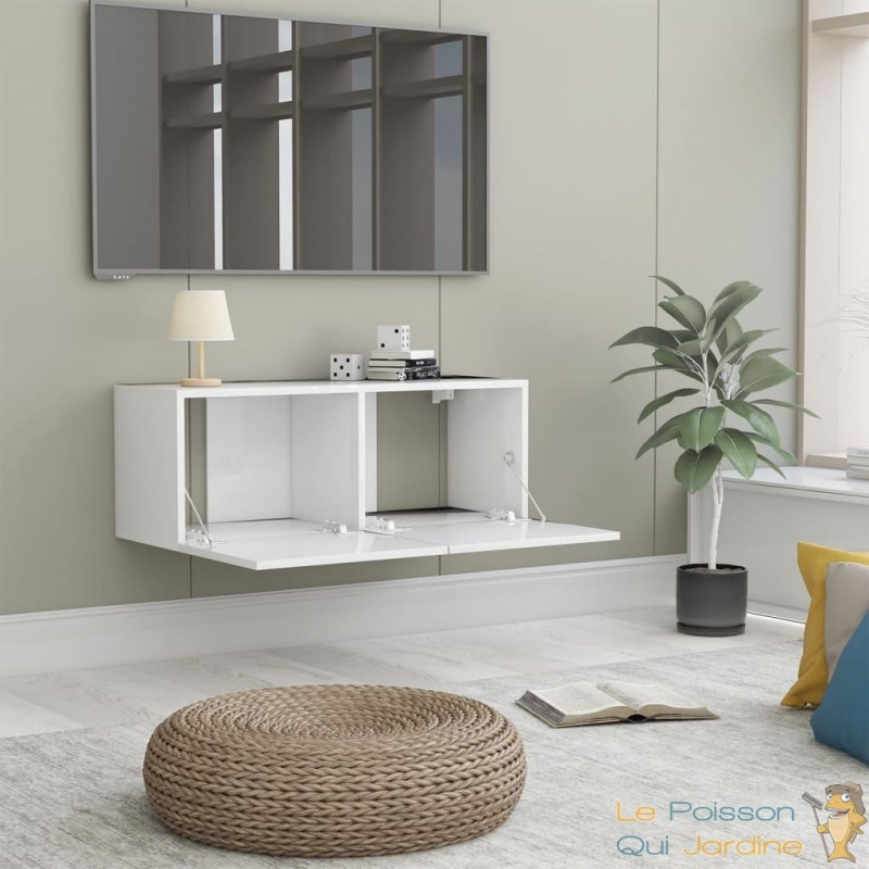 Grâce à sa fixation murale, ce meuble TV élégant ajoute une touche intemporelle à votre espace domestique.