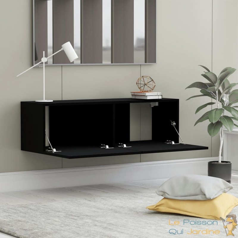 Grâce à sa fixation murale, ce meuble TV élégant ajoute une touche intemporelle à votre espace domestique.