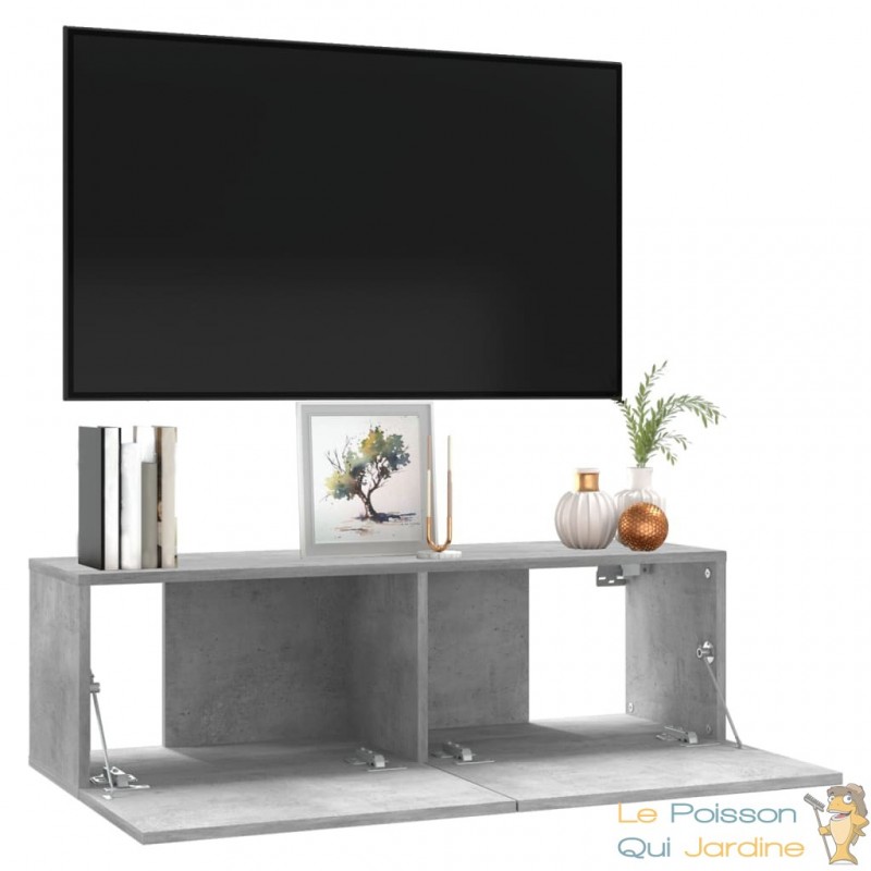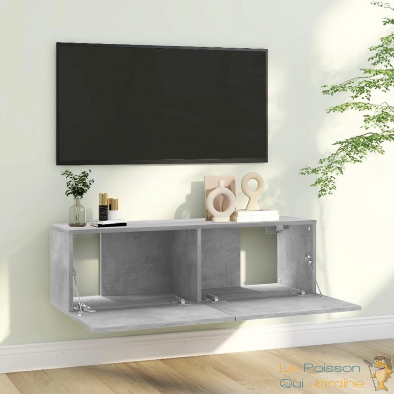 Grâce à sa fixation murale, ce meuble TV élégant ajoute une touche intemporelle à votre espace domestique. Cette caractéristique non seulement confère une esthétique moderne et aérée à votre intérieur, mais offre également une solution pratique pour maximiser l'espace au sol. En suspendant élégamment le meuble TV sur le mur, vous créez un effet visuel léger et contemporain, tout en offrant une alternative astucieuse pour l'agencement de votre salon. Cette fixation murale apporte une élégance intemporelle tout en optimisant la fonctionnalité de votre meuble TV.
