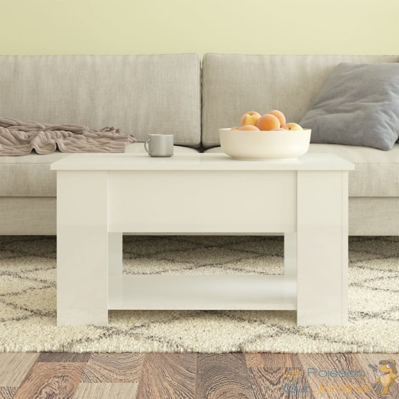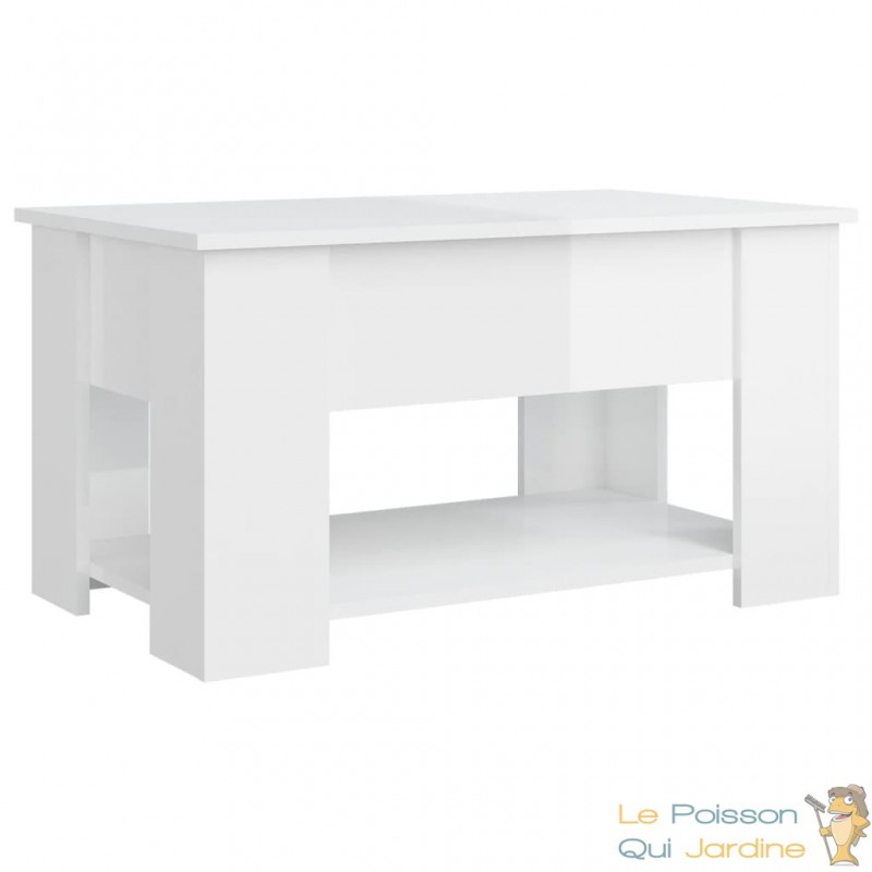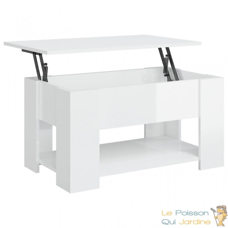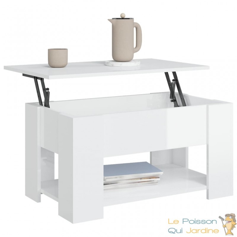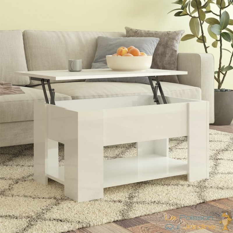 ✔ Table basse polyvalente blanc brillant avec dessus relevable