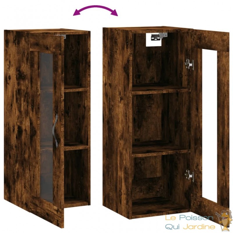 L'aspect polyvalent de cette armoire est également un atout. Vous avez la possibilité de la placer sur un buffet pour créer un buffet haut, offrant ainsi un espace de rangement supplémentaire. Son design épuré lui permet de s'intégrer harmonieusement dans divers espaces de vie, que ce soit dans le salon, la chambre à coucher, le bureau, ou tout autre endroit de votre choix. En somme, cette armoire murale combine esthétique, durabilité, fonctionnalité et polyvalence pour répondre à vos besoins de rangement et d'embellissement de votre intérieur.