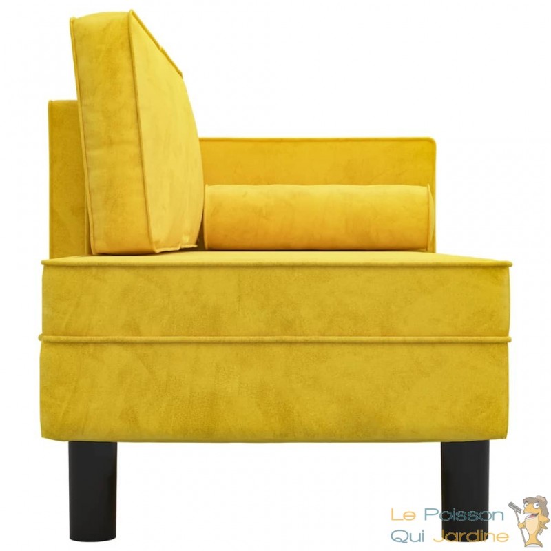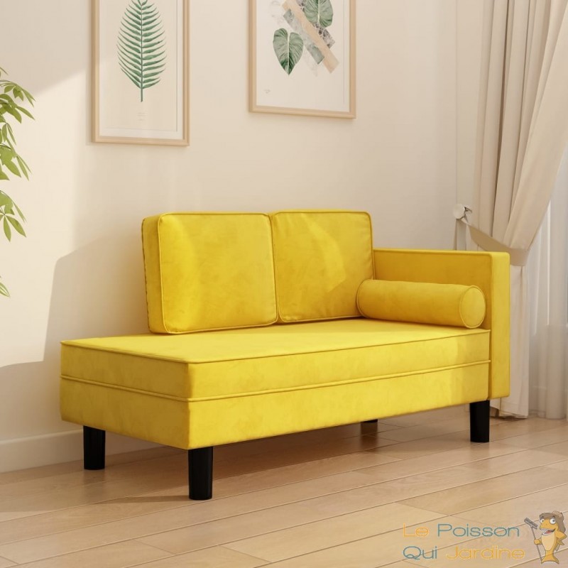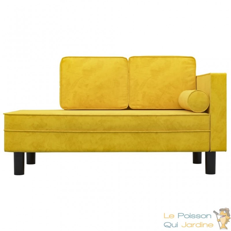 ✔ Chaise Longue Velours : Couleur Jaune, meuble polyvalent 3-en-1.