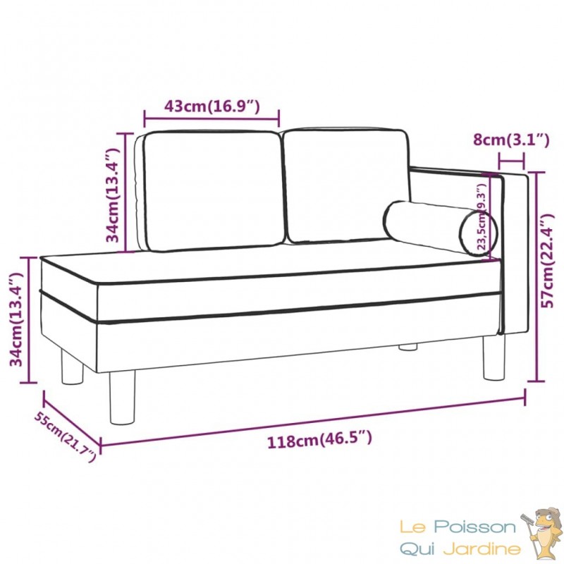 ✔ Dimensions : 118 x 55 x 57 cm (L x l x H), hauteur d'assise à 34 cm.