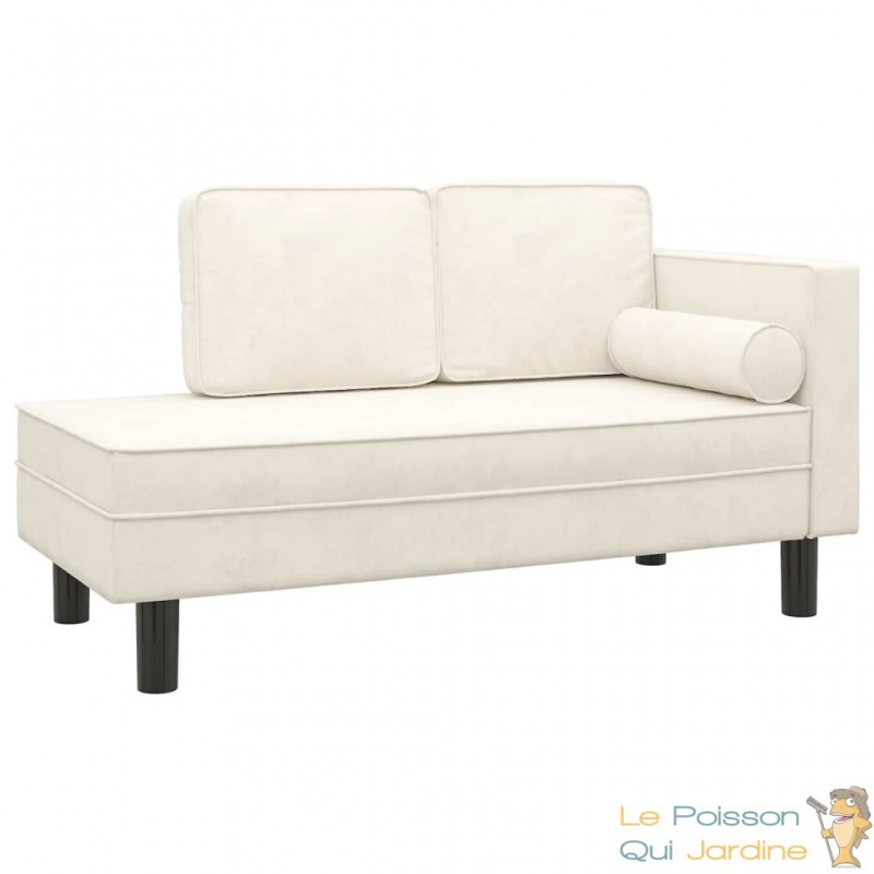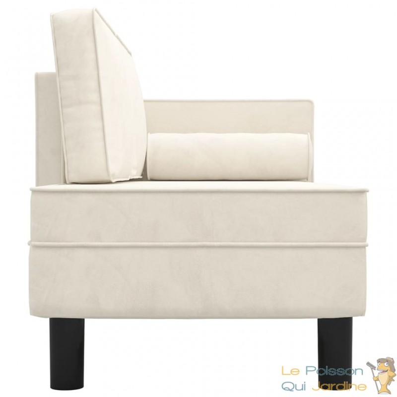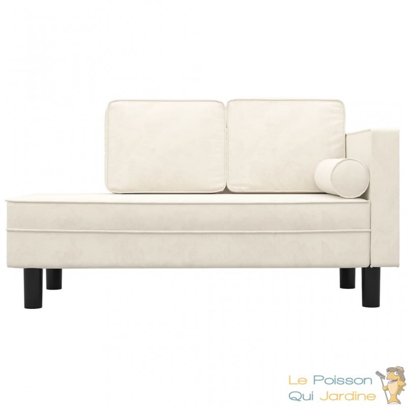 ✔ Chaise Longue Velours : Couleur Crème, meuble polyvalent 3-en-1.