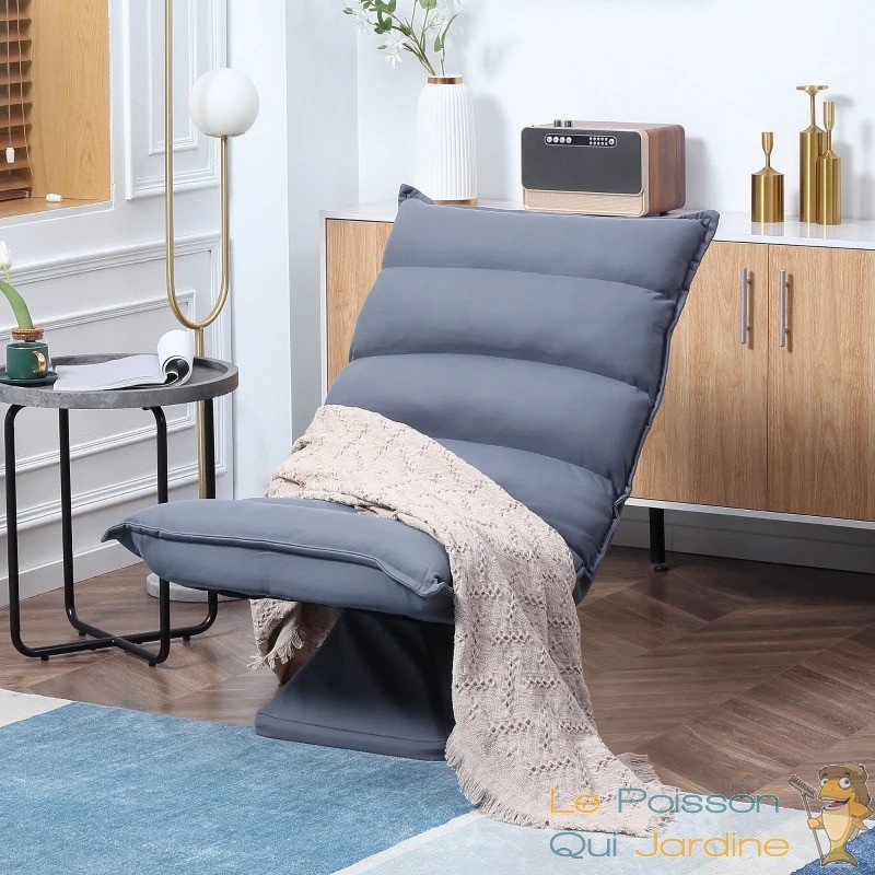 Fauteuil Design, Chill et Relax en Tissu GRIS / BLEU