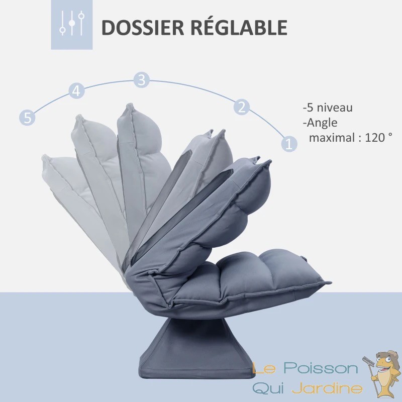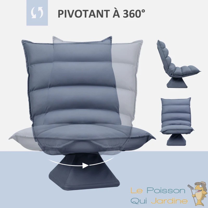 INCLINAISON RÉGLABLE, PIVOTANT À 360° : Pour répondre à vos besoins de confort personnalisés, ce fauteuil est équipé d'un dossier inclinable avec un angle d'inclinaison maximal de 120°. Vous pouvez ainsi ajuster facilement l'inclinaison pour trouver la position idéale pour vous détendre. De plus, le châssis en métal pivotant à 360° offre une liberté de mouvement totale, vous permettant de tourner et de vous déplacer en toute fluidité, tout en assurant une stabilité optimale.