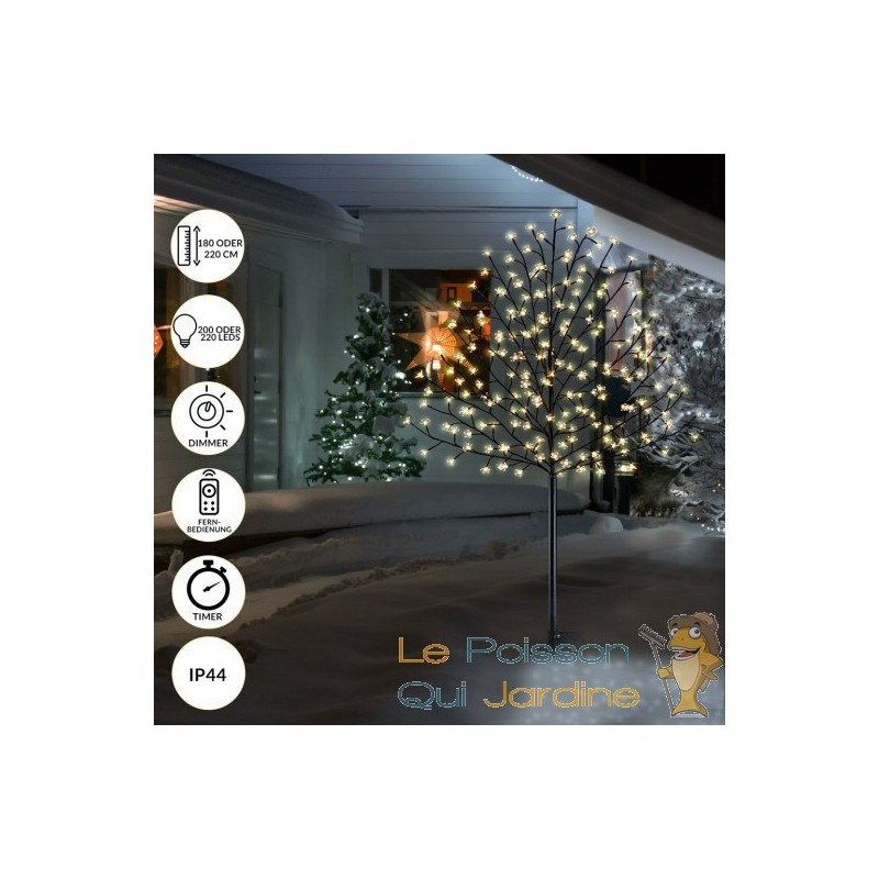 Les avantages du produit incluent sa longueur de 220 cm, adaptée pour un impact visuel optimal. L'arbre lumineux convient à la fois pour une utilisation en intérieur et en extérieur, ce qui vous offre une grande polyvalence. De plus, son indice de protection IP44 garantit qu'il est résistant à l'eau, assurant une utilisation fiable même lorsqu'il est exposé aux intempéries.