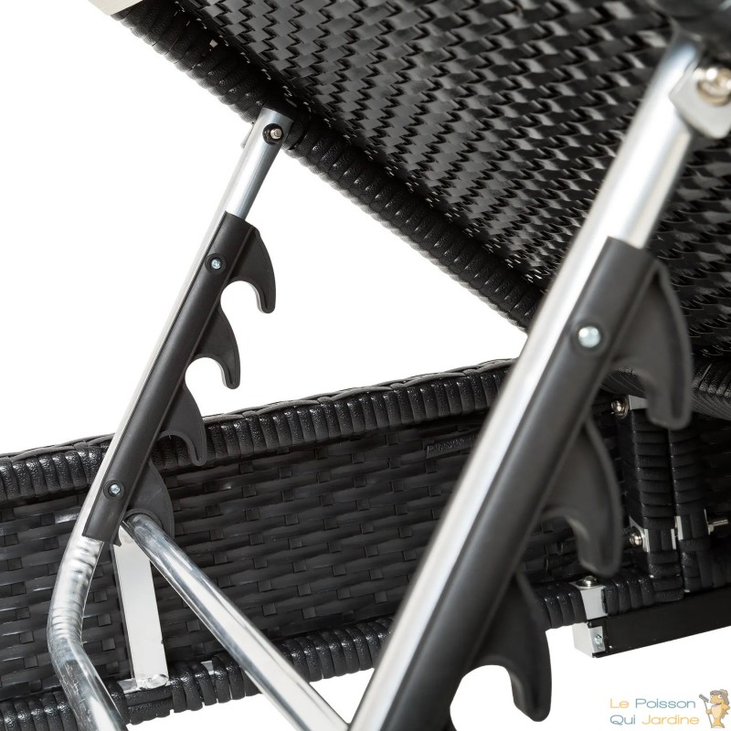 Le socle en aluminium de ce bain de soleil ou transat est soigneusement conçu avec des vis en acier inoxydable, offrant ainsi une résistance exceptionnelle à la rouille et une durabilité accrue même dans des environnements extérieurs exigeants. Cette construction robuste garantit une stabilité solide tout en assurant une protection contre les éléments, prolongeant ainsi la durée de vie de votre meuble de jardin.