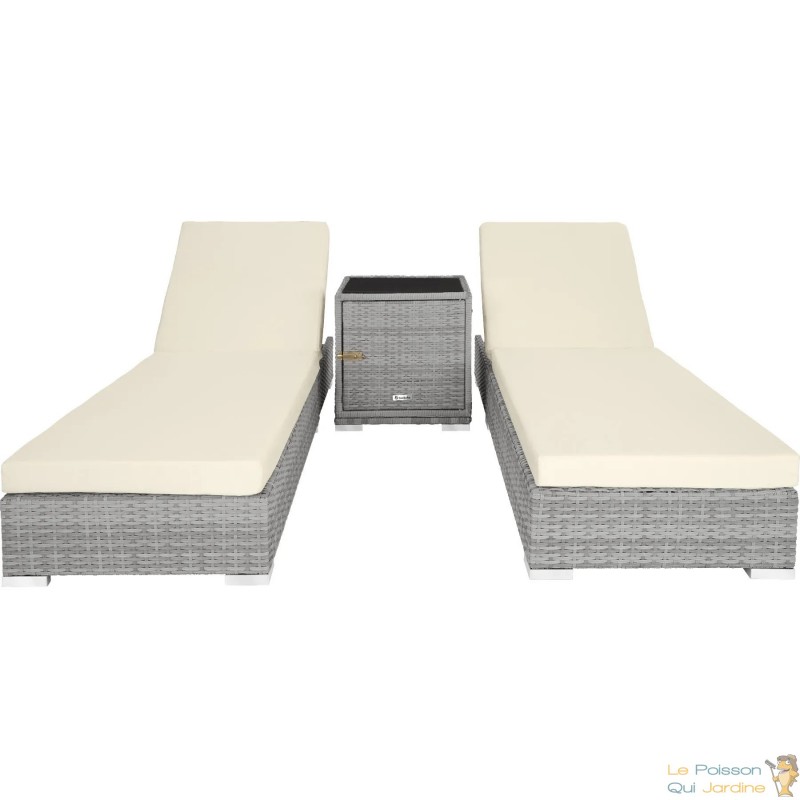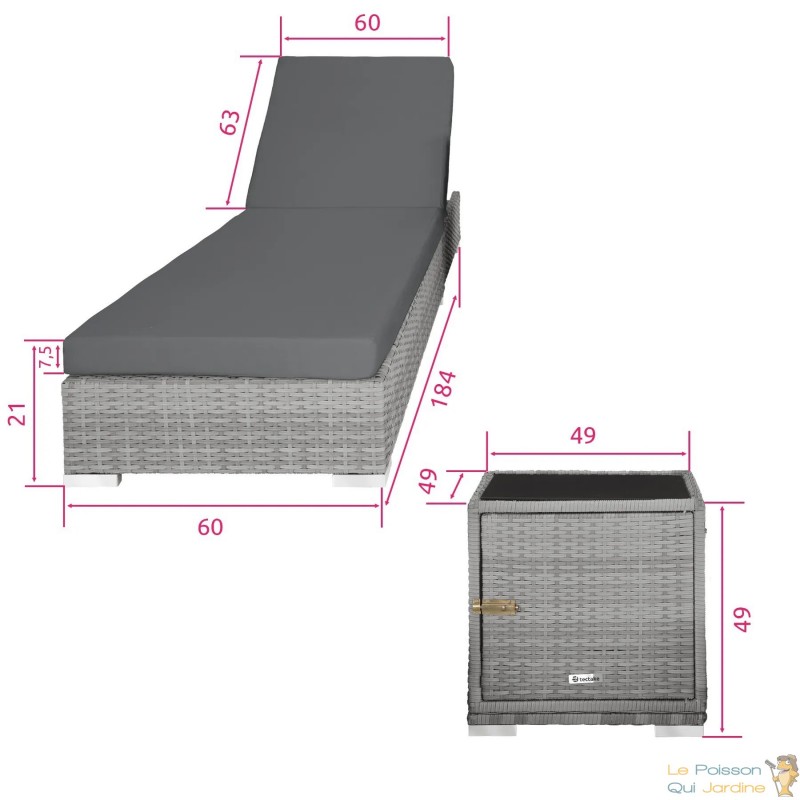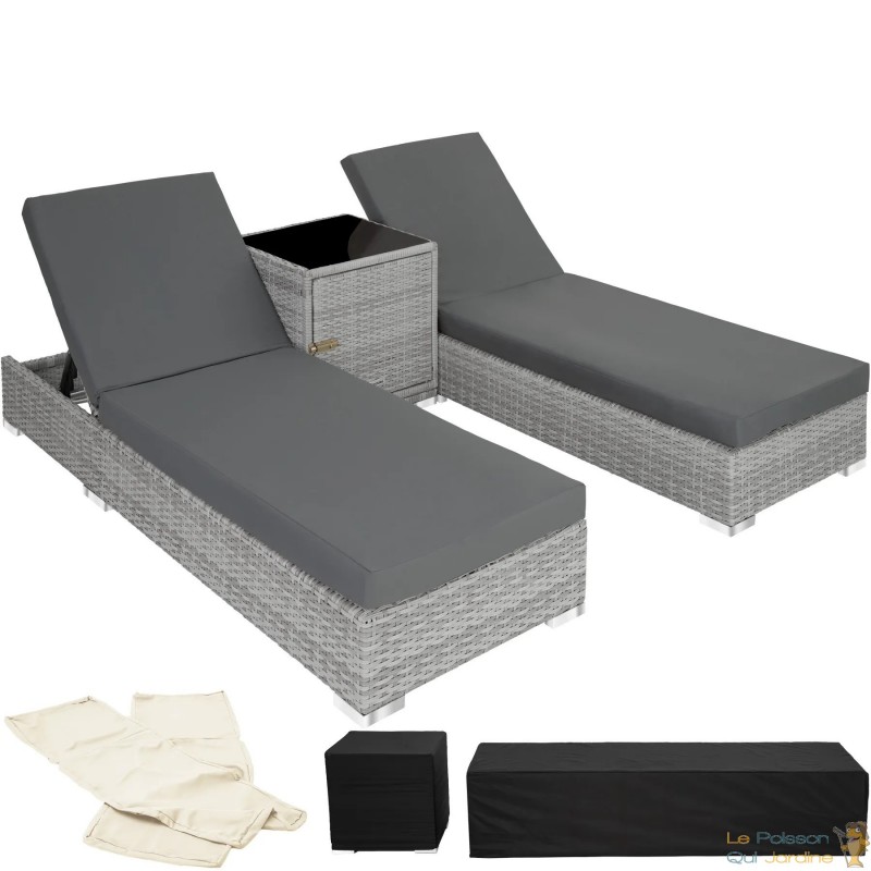 En résumé, ce bain de soleil avec sa table intégrée et son coffre de rangement représente l'alliance parfaite entre praticité, durabilité et esthétique. Que ce soit pour se détendre au soleil, partager un verre entre amis ou simplement profiter de la nature, cet ensemble offre tout le confort nécessaire pour passer des moments agréables en extérieur, tout en gardant vos essentiels à portée de main.