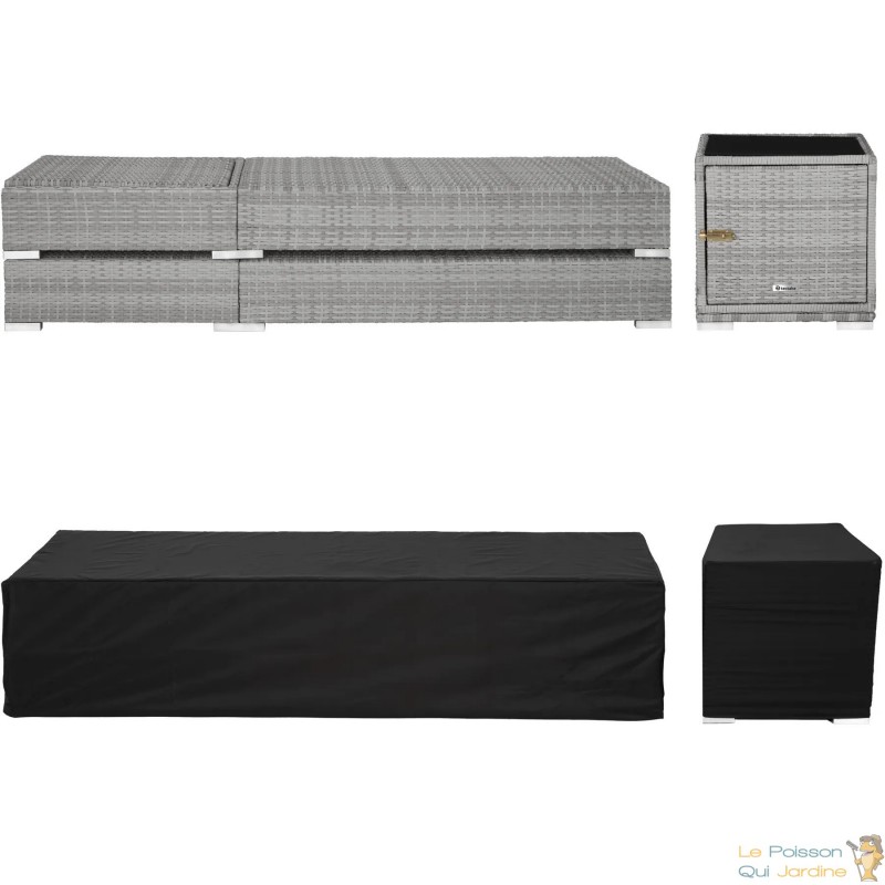 Pour plus de polyvalence, deux sets de housses lavables avec revêtement hydrofuge sont inclus dans la livraison, avec une housse de protection supplémentaire. Les housses des matelas sont disponibles en deux couleurs (gris et beige) pour s'adapter à votre style et peuvent être facilement lavées pour une utilisation prolongée. Lorsque la belle saison se termine, vous pouvez ranger vos bains de soleil en toute simplicité jusqu'à l'année prochaine.
