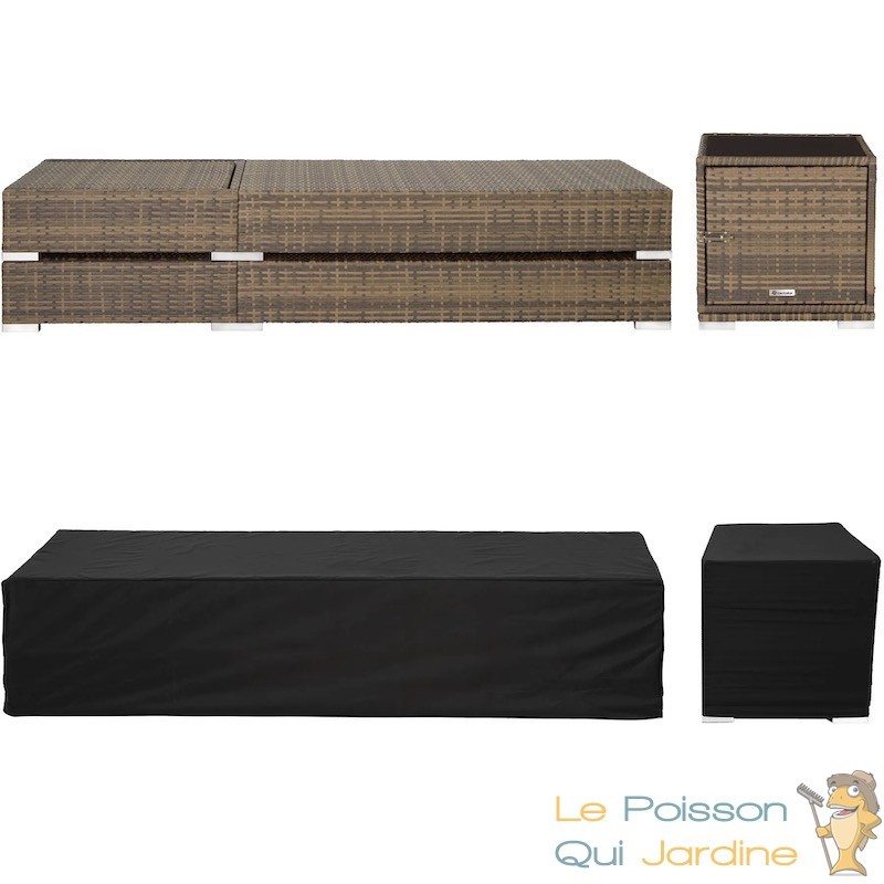 Pour plus de polyvalence, deux sets de housses lavables avec revêtement hydrofuge sont inclus dans la livraison, avec une housse de protection supplémentaire. Les housses des matelas sont disponibles en deux couleurs (gris et beige) pour s'adapter à votre style et peuvent être facilement lavées pour une utilisation prolongée. Lorsque la belle saison se termine, vous pouvez ranger vos bains de soleil en toute simplicité jusqu'à l'année prochaine.