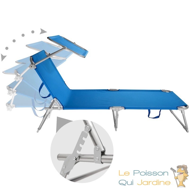 Dossier inclinable : Ce transat est équipé d'un dossier inclinable avec 4 positions différentes. Vous pouvez ajuster l'inclinaison du dossier selon votre préférence, vous offrant ainsi un confort personnalisé pour vos moments de détente.