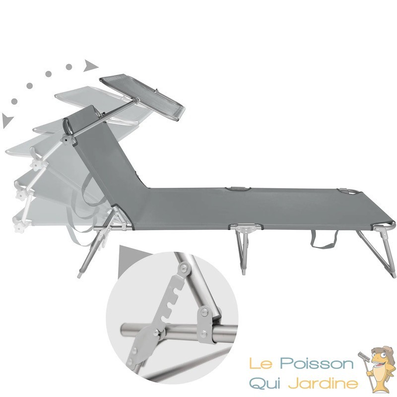 Dossier inclinable : Ce transat est équipé d'un dossier inclinable avec 4 positions différentes. Vous pouvez ajuster l'inclinaison du dossier selon votre préférence, vous offrant ainsi un confort personnalisé pour vos moments de détente.