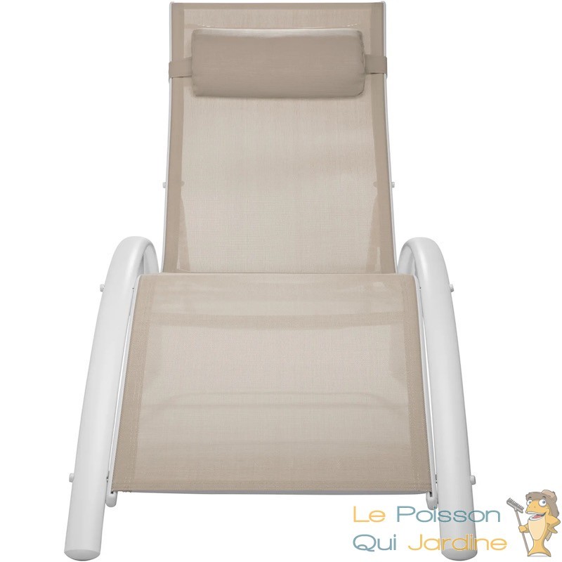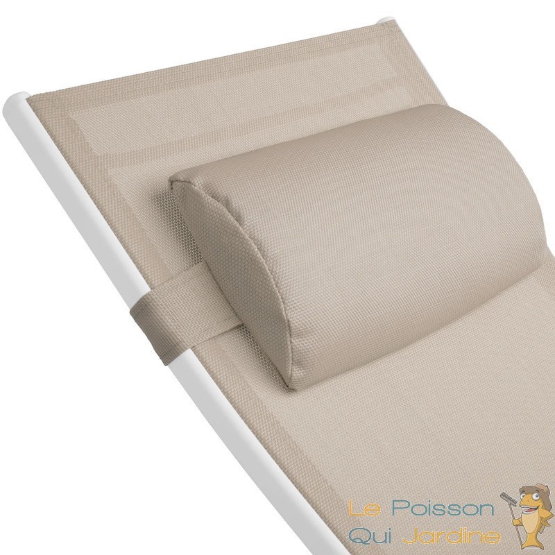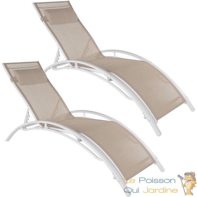 ✔ Lot de 2 transats beiges avec coussin de tête amovible