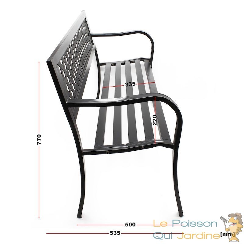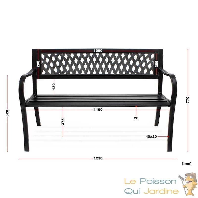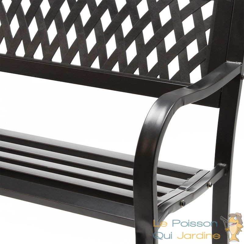 Ce banc, doté d'un revêtement en poudre d'acier, offre non seulement une esthétique charmante mais aussi une durabilité remarquable, capable de résister aux intempéries et à l'usure du temps. Son allure intemporelle apporte une touche d'élégance à votre jardin, en créant un coin de détente où vous pourrez vous reposer et profiter de la beauté de votre environnement extérieur.