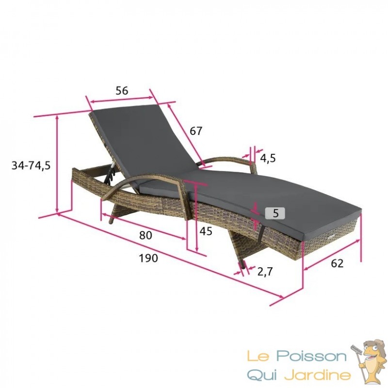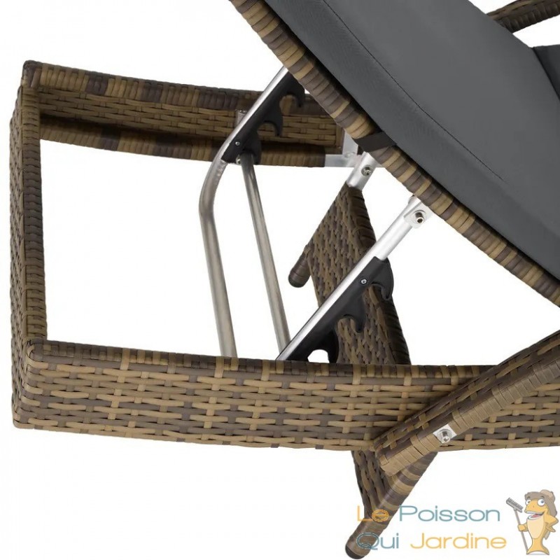 Il est réglable : son dossier s’incline en 5 positions, de 0° à 45°, pour s’adapter à vos envies. Vous pouvez ainsi choisir la position la plus confortable pour vous reposer, lire ou bronzer.