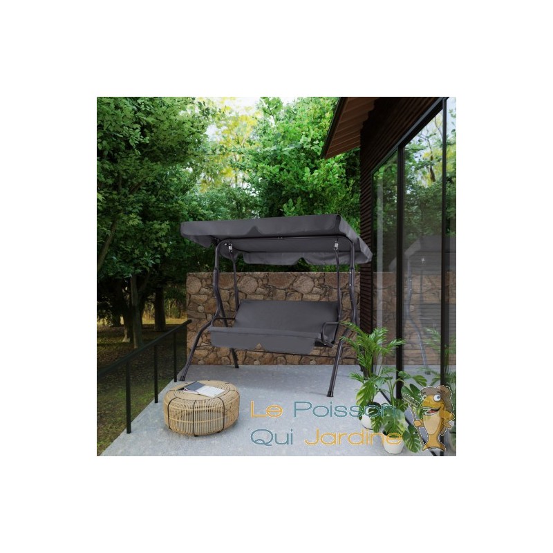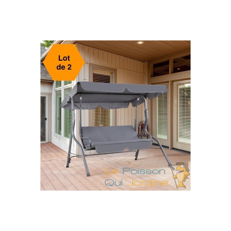 Lot de 2 Balancelles de jardin 2 places Grise Anthracite 140 cm de long