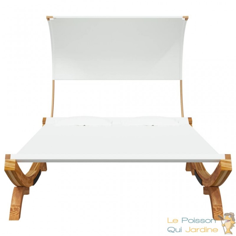 Un des atouts majeurs de ce lit de repos est son auvent, offrant une protection bienvenue contre les rayons du soleil pendant vos moments de détente. Cet auvent bien pensé vous permet de profiter de votre espace extérieur sans craindre les effets néfastes d'une exposition prolongée au soleil. Que ce soit pour lire un livre, faire la sieste ou simplement contempler la nature, cet auvent assure un confort optimal en filtrant les rayons UV tout en laissant passer une douce brise estivale.