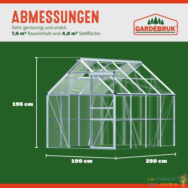 Découvrez une serre de jardin de première qualité, conçue pour la stabilité et la performance, dotée de caractéristiques astucieuses. Cette serre est construite avec des panneaux en polycarbonate à double paroi et des profilés en aluminium anodisés, garantissant à la fois une solidité exceptionnelle et une excellente isolation thermique. Elle est équipée de lucarnes de toit pliables pour une ventilation optimale, ainsi que d'une gouttière ingénieuse qui dirige efficacement l'eau de pluie vers le bas. Cette caractéristique vous permet de collecter l'eau de pluie à l'aide de récipients appropriés, offrant une solution écologique pour l'arrosage de vos plantes.