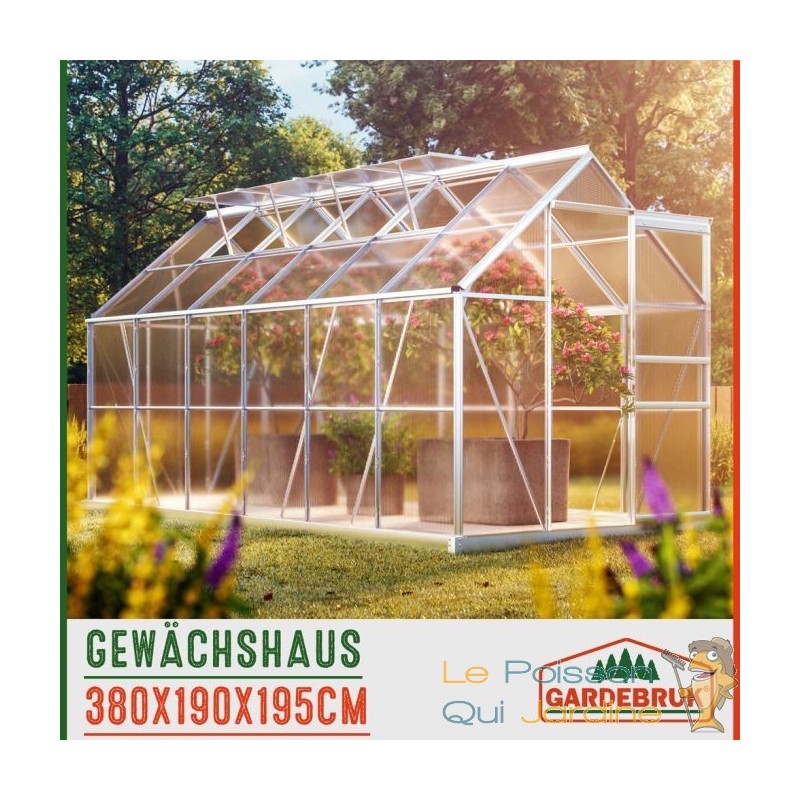 Découvrez une serre de jardin de première qualité, conçue pour la stabilité et la performance, dotée de caractéristiques astucieuses. Cette serre est construite avec des panneaux en polycarbonate à double paroi et des profilés en aluminium anodisés, garantissant à la fois une solidité exceptionnelle et une excellente isolation thermique. Elle est équipée de lucarnes de toit pliables pour une ventilation optimale, ainsi que d'une gouttière ingénieuse qui dirige efficacement l'eau de pluie vers le bas. Cette caractéristique vous permet de collecter l'eau de pluie à l'aide de récipients appropriés, offrant une solution écologique pour l'arrosage de vos plantes.
