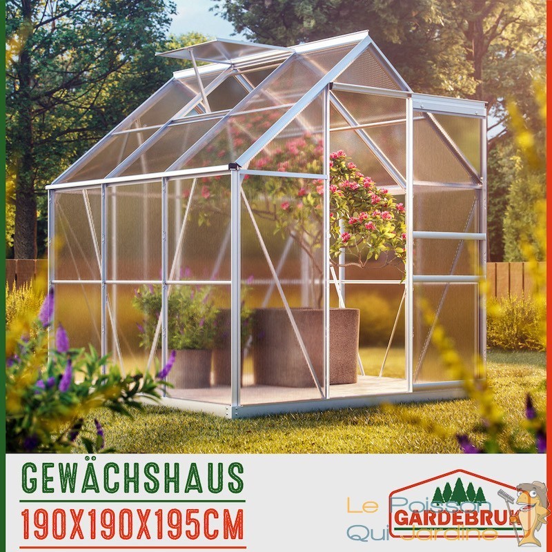 Découvrez une serre de jardin de première qualité, conçue pour la stabilité et la performance, dotée de caractéristiques astucieuses. Cette serre est construite avec des panneaux en polycarbonate à double paroi et des profilés en aluminium anodisés, garantissant à la fois une solidité exceptionnelle et une excellente isolation thermique. Elle est équipée de lucarnes de toit pliables pour une ventilation optimale, ainsi que d'une gouttière ingénieuse qui dirige efficacement l'eau de pluie vers le bas. Cette caractéristique vous permet de collecter l'eau de pluie à l'aide de récipients appropriés, offrant une solution écologique pour l'arrosage de vos plantes.