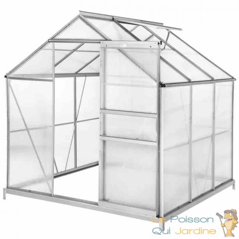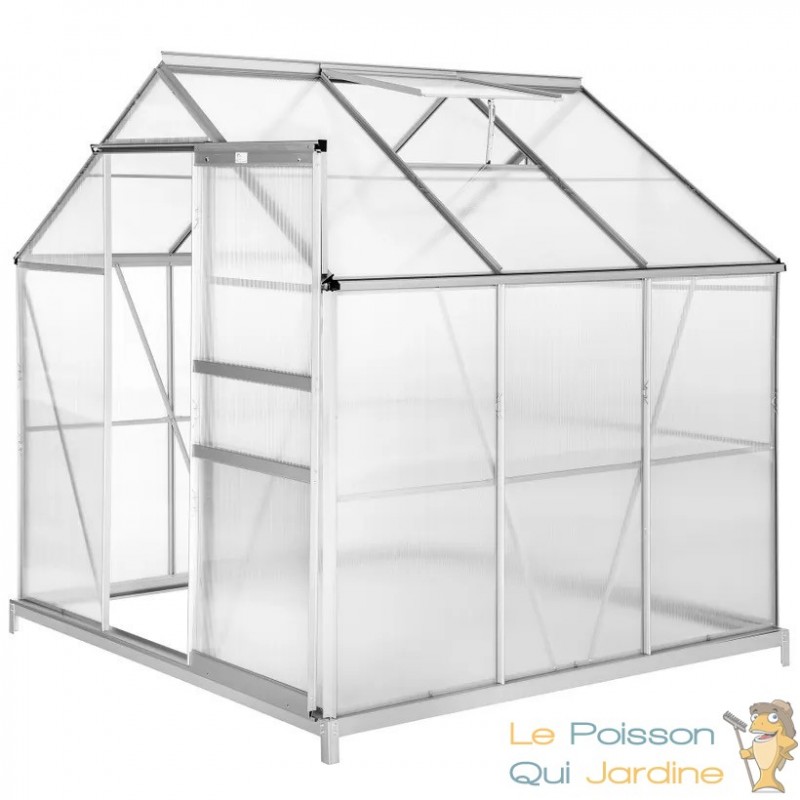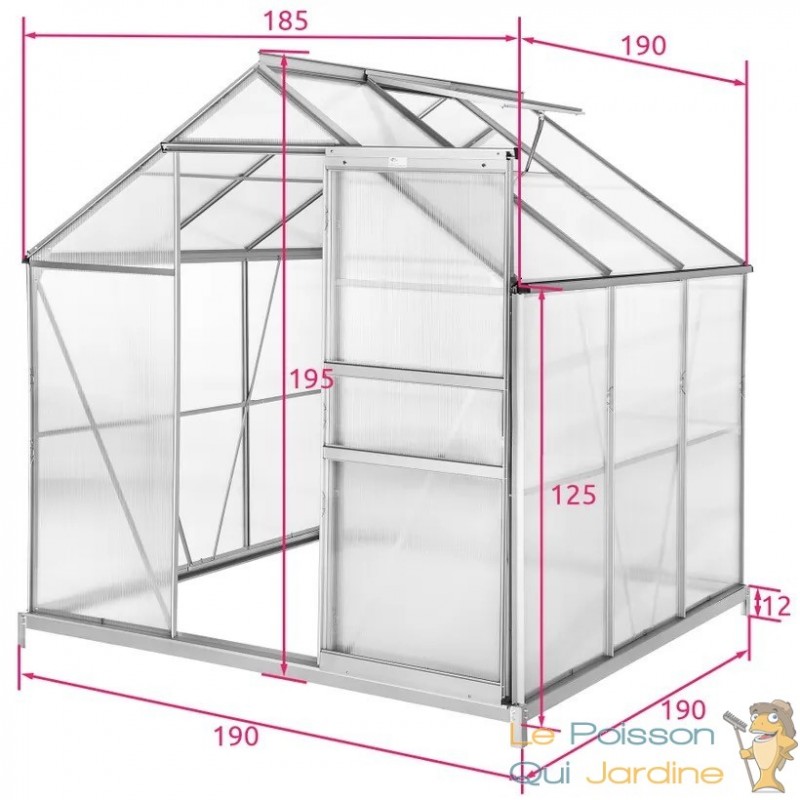 Découvrez une serre de jardin de première qualité, conçue pour la stabilité et la performance, dotée de caractéristiques astucieuses. Cette serre est construite avec des panneaux en polycarbonate à double paroi et des profilés en aluminium anodisés, garantissant à la fois une solidité exceptionnelle et une excellente isolation thermique. Elle est équipée de lucarnes de toit pliables pour une ventilation optimale, ainsi que d'une gouttière ingénieuse qui dirige efficacement l'eau de pluie vers le bas. Cette caractéristique vous permet de collecter l'eau de pluie à l'aide de récipients appropriés, offrant une solution écologique pour l'arrosage de vos plantes.