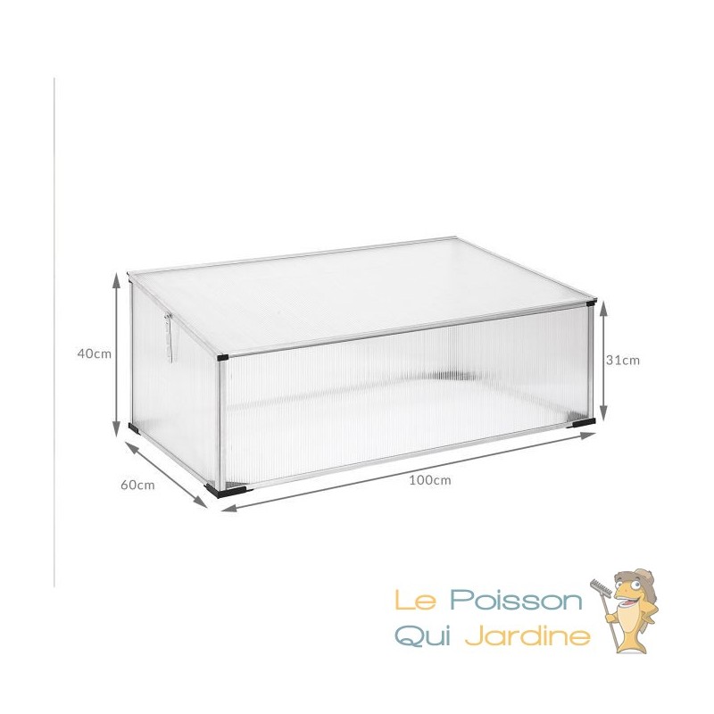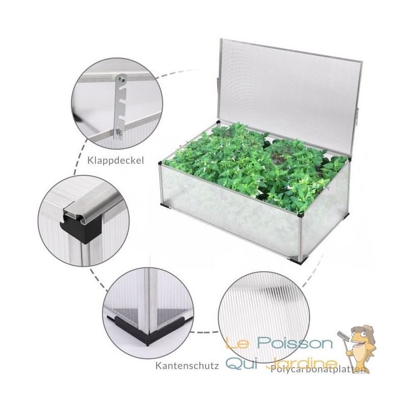 De plus, les pieds en plastique stables garantissent un bon maintien dans le sol, même lors de conditions météorologiques changeantes. Le système d'emboîtement en aluminium simplifie grandement le montage, vous permettant de créer votre mini serre rapidement et sans tracas.