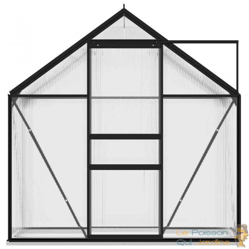Explorez cette spacieuse serre de jardin, conçue pour accueillir un grand nombre de plantes tout en les protégeant efficacement du froid. Cette serre se distingue par sa couleur anthracite et sa transparence, elle est fabriquée en utilisant des matériaux de qualité tels que l'aluminium et le polycarbonate.